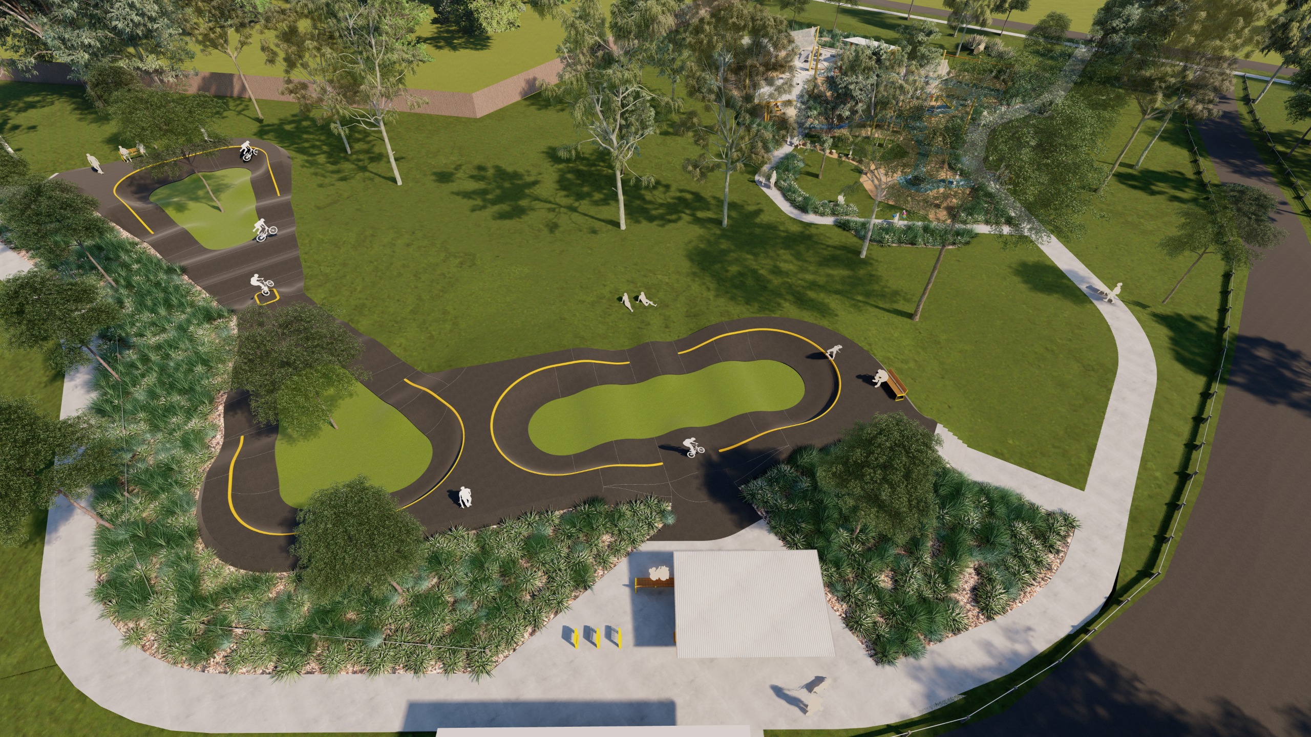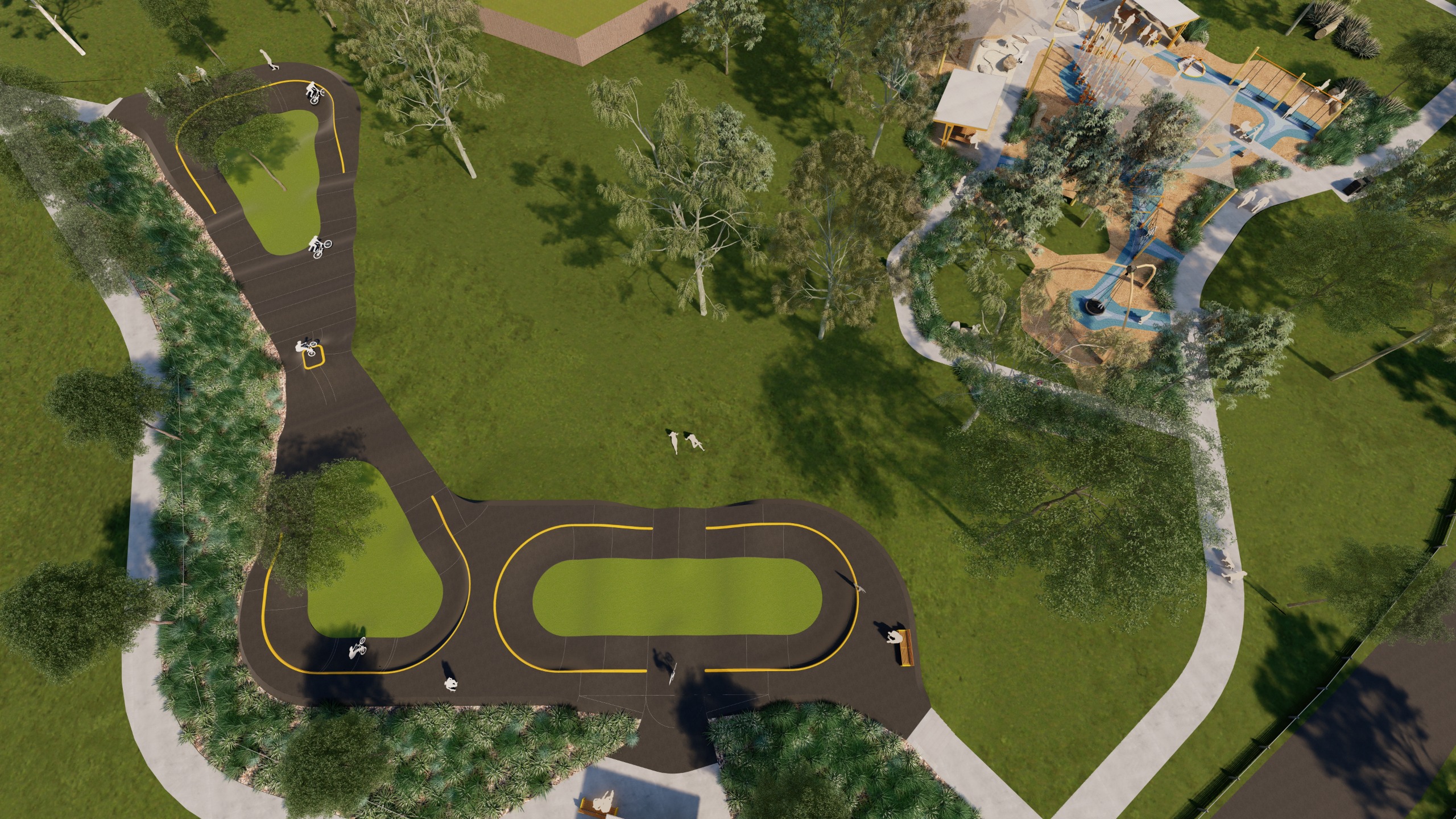 Existing trees are to be retained in the proposed playspace and pump track designs.