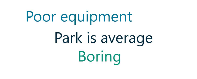 Respondents noted that their child gets bored by the small amount of equipment, poor equipment and the park is average.