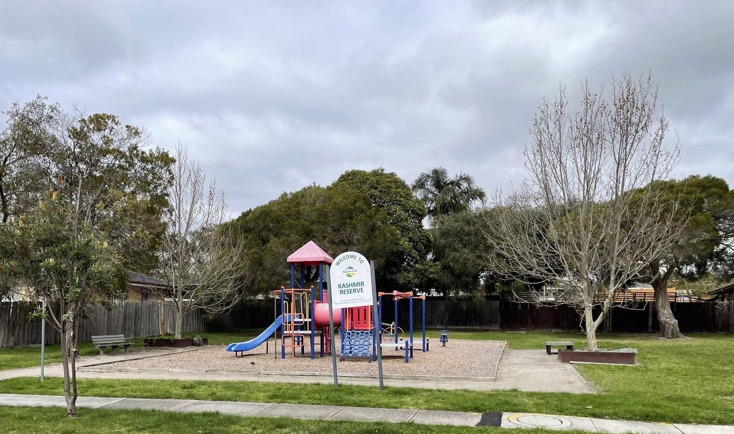 Kashmir Reserve is a Local (minor) playspace, intended to service the immediate neighbourhood within a 400m walking catchment as identified in the Frankston Play Strategy 2021. It supports short visits (up to an hour) and focuses on play for preschool and junior aged children.