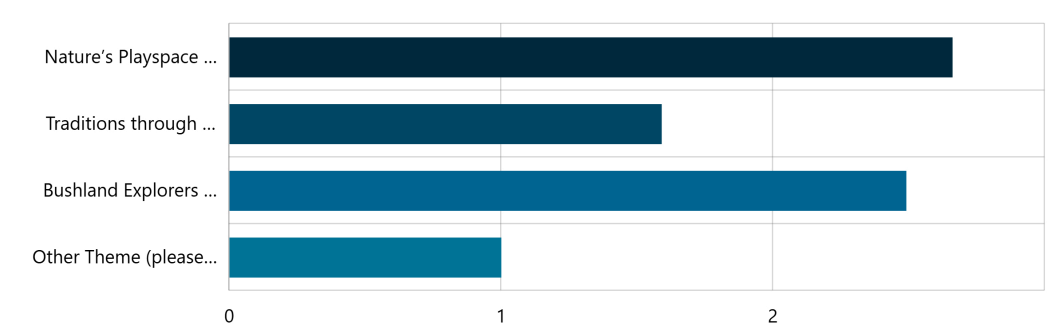 The proposed theme of 'Nature's Playspace (Celebrate the trees and local ecooloy through nature-inspired design)' was ranked first with a count of 60. The theme of 'Bushland Explorers (Integrate play features that reflect kindergarten-style activities inspired by bushland settings) was ranked second with a score of 56.