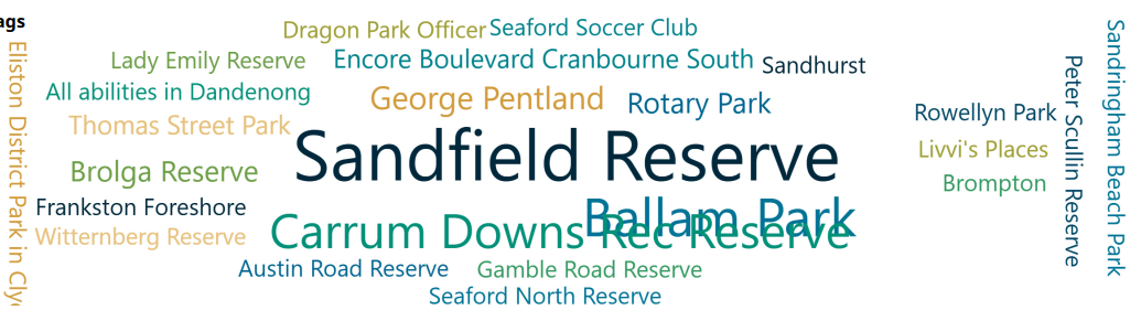 Of the 55 (74.3%) of respondents to this question, 18 (33%) said Sandfield Reserve is their favourite, followed by 12 (22% listing Ballam park, and 10 (18%) listing Carrum Downs recreation Reserve.
